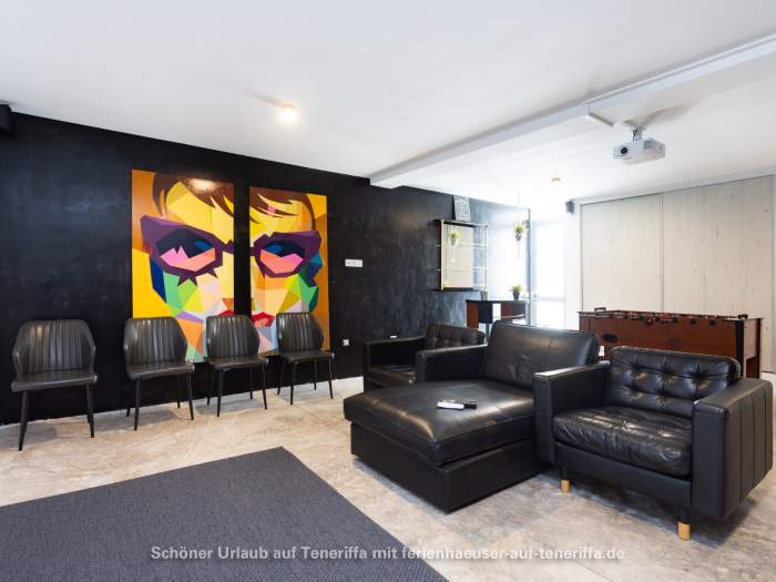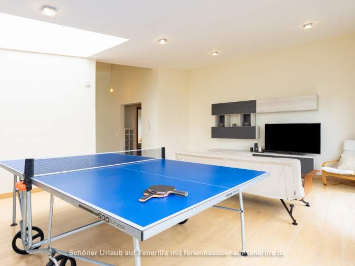 Auch für Unterhaltung ist bestens gesorgt. Ein privater Kinoraum mit Tischfußball lädt zu Filmabenden und kleinen Turnieren ein. Im Spielzimmer mit Tischtennisplatte können Sie sich sportlich austoben, während der eigene Fitnessraum ideal für alle ist, die auch im Urlaub aktiv bleiben möchten. Eine praktische Waschküche sowie zahlreiche Annehmlichkeiten im gesamten Haus runden das Angebot ab und machen den Aufenthalt besonders komfortabel.