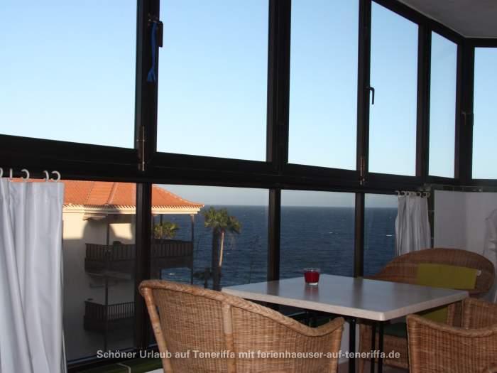 - Möblierter Balkon mit Teideblick und seitlich zum Meer
