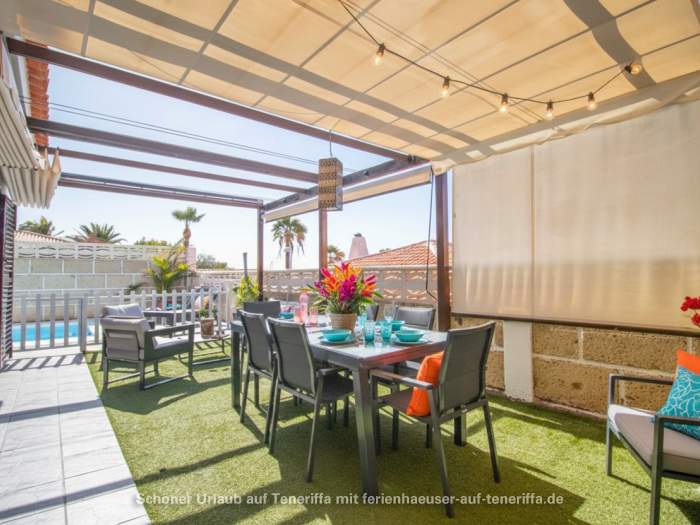- Terrasse mit Meerblick und Blick auf die Insel La Gomera.