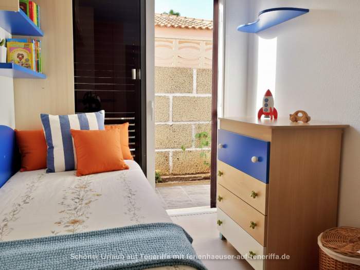- 1 Hauptschlafzimmer mit Doppelbett (1,80 x 2,00 m) und direktem Terrassenzugang.