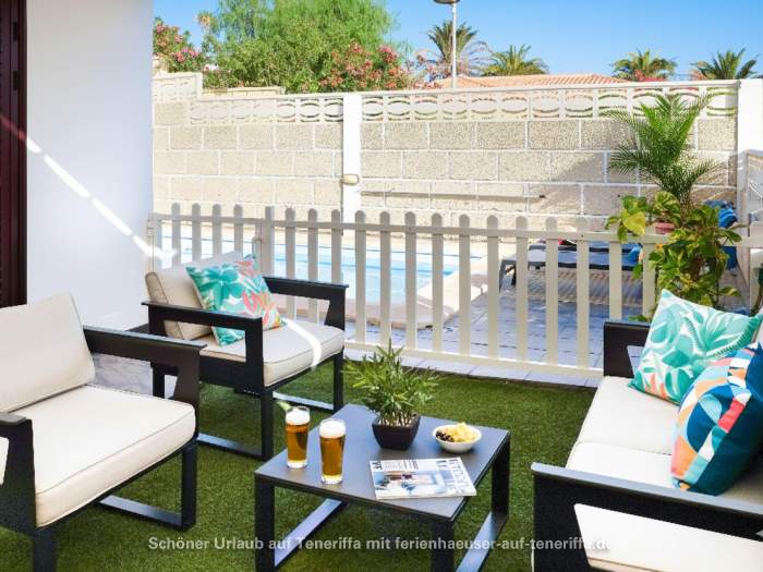 Dieses einladende Ferienhaus befindet sich in Callao Salvaje, einem charmanten Küstenort an der Südwestküste Teneriffas, der mit rund 360 Sonnentagen im Jahr begeistert. Die Küste ist größtenteils felsig, doch ein moderner Sandstrand lädt zum Entspannen ein. Im Ort gibt es zahlreiche Einkaufsmöglichkeiten wie Supermärkte, Boutiquen und Zeitungsläden sowie Restaurants, spanische Bars, ein Eiscafé und eine Konditorei – alles fußläufig erreichbar. Am Ortseingang liegt die Sportanlage "Callao Sport" mit Tennisplätzen, einem 9-Loch-Pitch-and-Putt-Golfplatz und einem Wellness-Spa.