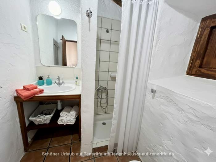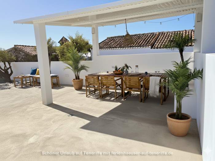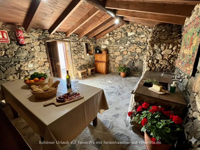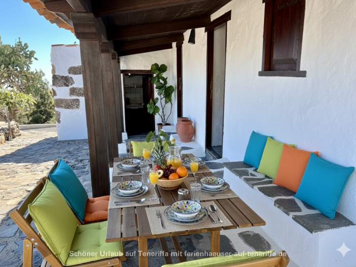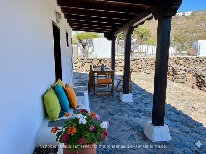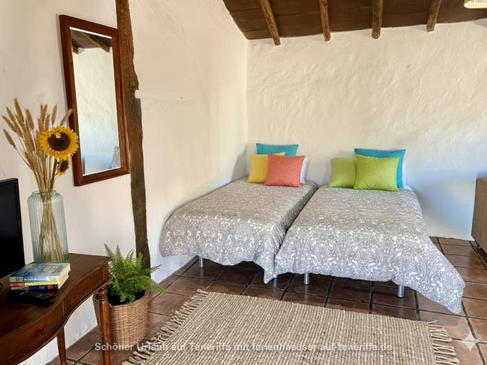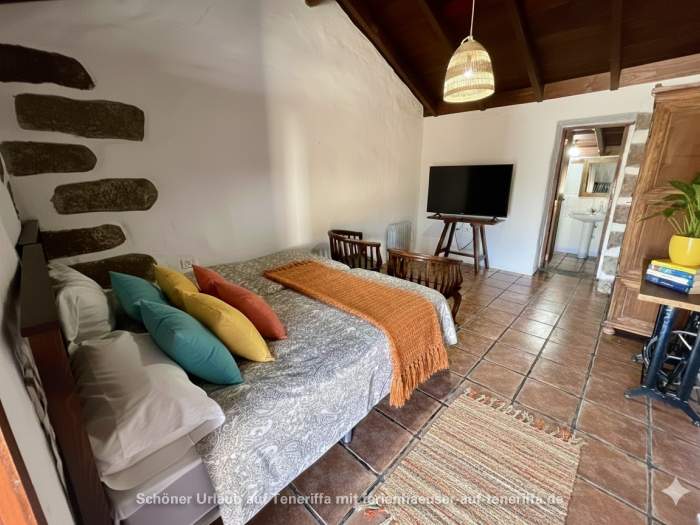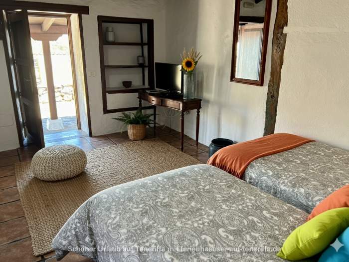 Das Haus besitzt eine traditionelle kanarische Besonderheit: Alle Räume sind ausschließlich von außen zugänglich. Die Küche und die Schlafzimmer mit En-suite-Bädern erreichen Sie über die überdachte Terrasse auf der linken Seite, den Wohn- und Schlafraum über die rechte Seite.