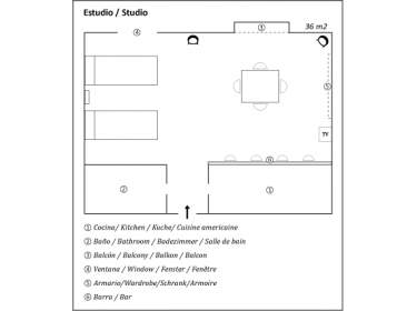 Von hier aus sind die Wege zur Playa Martiánez, den Meerwasserschwimmbecken und der Promenade nicht weit. Auch das Zentrum erreicht man in wenigen Fußminuten. Jedes Studio hat eine private, möblierte Terrasse.